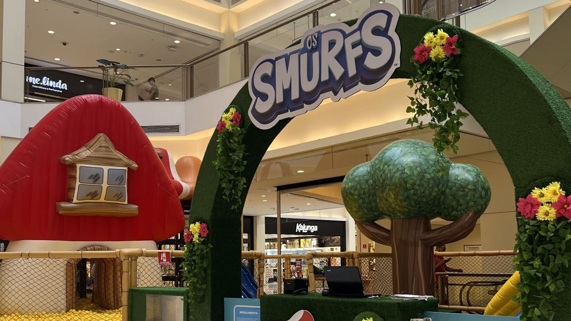 O espaço conta com brinquedos infláveis, escorregadores e uma piscina com mais de 200 mil bolinhas, além de cenários temáticos que recriam o Jardim dos Smurfs. Para os adultos, a diversão é repleta de nostalgia, enquanto os pequenos descobrem o encanto dos personagens. O parque também oferece ambientes instagramáveis para fotos em família.